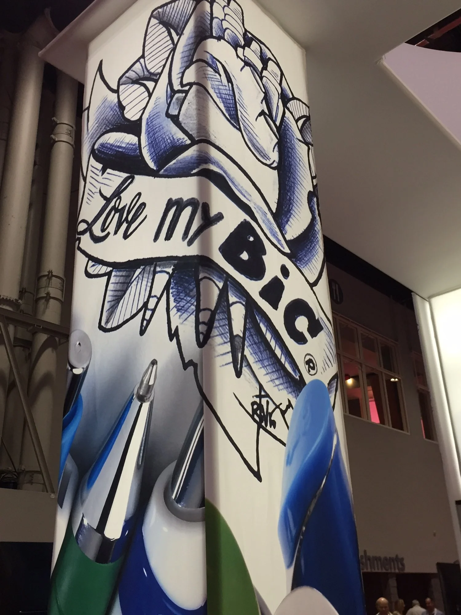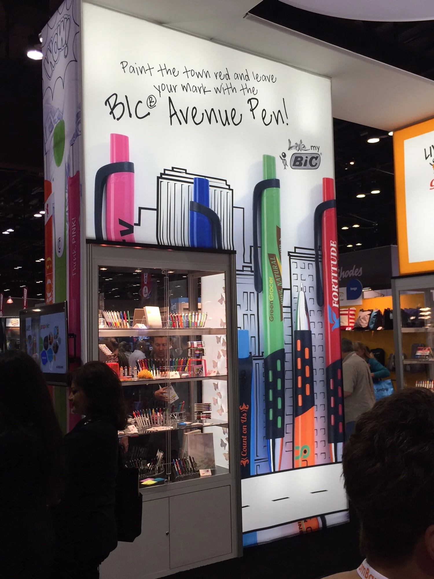 Celebrating the largest new product launch in company history the Love My BIC campaign highlights the unique brand culture, customer loyalty and innovative product offering the brand is known for. Partnering with 5 local artists inspired by the BIC writing instrument assortment the campaign celebrates the freedom to create and inspire. Each artist was given a photograph featuring an assortment of new BIC products and asked to interpret the collection through their unique style or genre (graffiti, pointillism, fantasy etc.) Their artwork formed the cornerstone of the campaign and was featured on catalog covers, social media, emails, tradeshow graphics, video and more. 2 select artists were chosen to create live, large format pieces of art at our largest trade show PPAI Las Vegas.